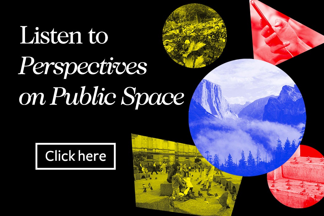 Three colorful shapes against a black background demonstrating the idea of national parks and public lands