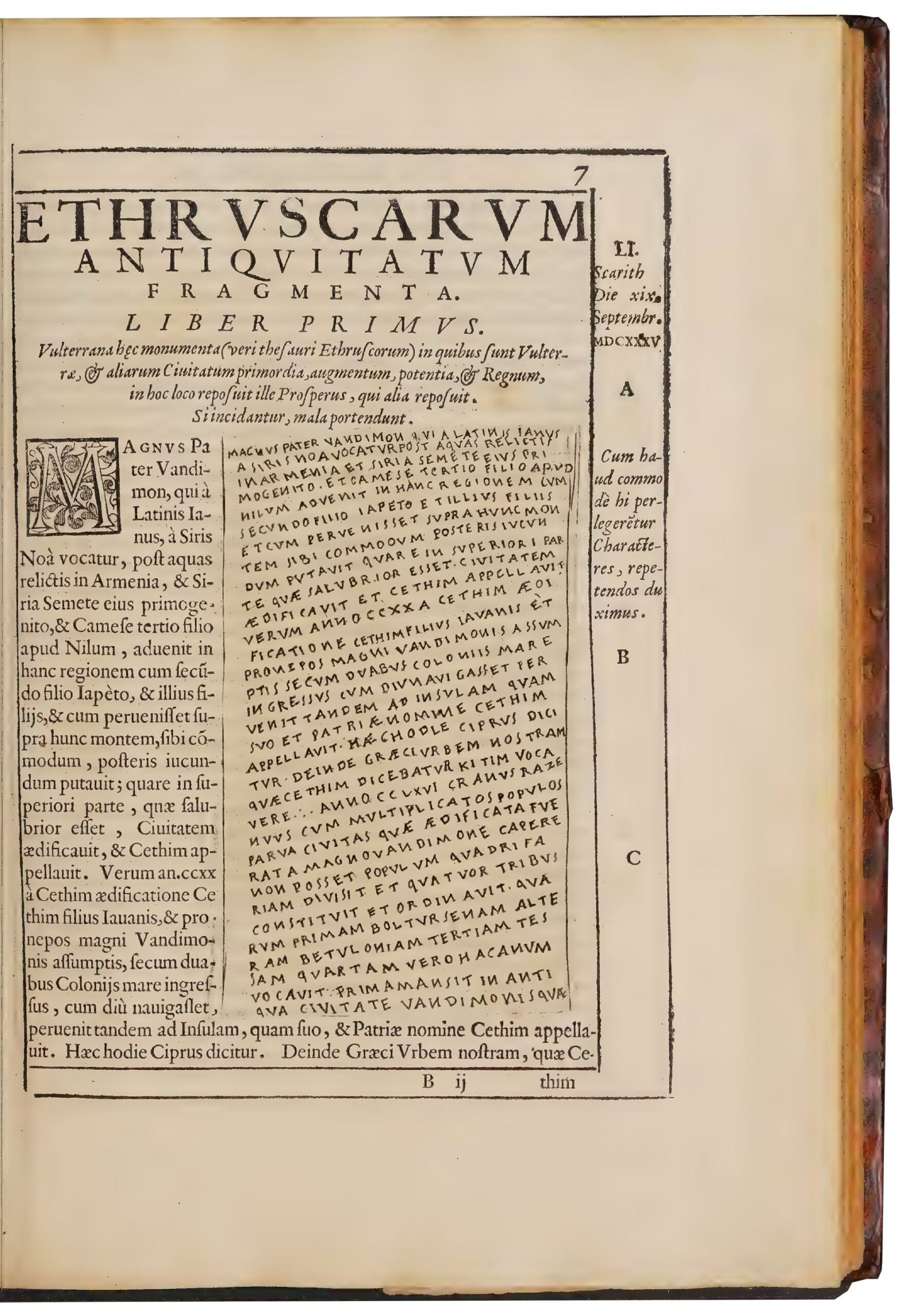In the earlier periods, a lot of it is what I call “patriotic mythology.” For example, the Italians expressed anxiety during the Renaissance, following the revival of Greco-Roman culture, that they came long after the Greeks, and there’s this idea that the one who came first is always the most important, the most influential and authoritative culture. So the Dominican Annius of Viterbo decided to “discover” a sequence of previously lost ancient texts written by a Babylonian, a Jew, a Christian, a Roman, an Egyptian, and all these others, around which Annius wrote ingenious commentaries. Of course, he forged all of it, mostly with the aim of demonstrating that the ancient Egyptian god Osiris ultimately resettled in Viterbo, Italy, which then became the epicenter of all human culture, not to mention Annius’s own hometown.