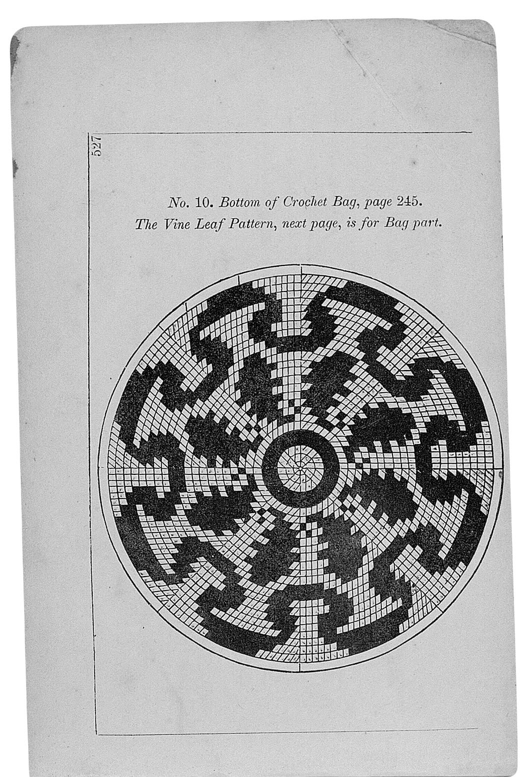 An illustration from The Lady’s Assistant for executing useful and fancy designs in knitting, netting, and crochet work, with illustrated patterns originally composed by the late Mrs. Gaugain.