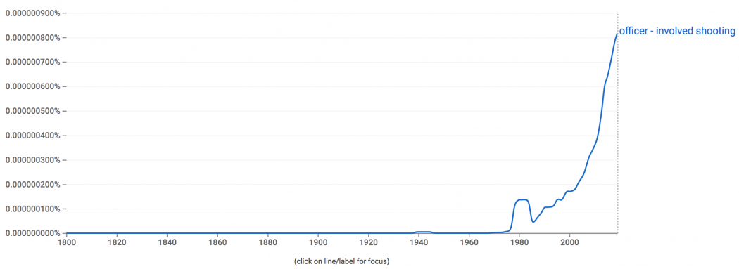 And likewise, in the phrase “officer-involved shooting,” language itself aggressively suppresses the police force’s own aggressive actions. Since its first appearance in the 1970s, this has been a problematic euphemism, stemming from technical police jargon that many journalists have persistently repeated in their reporting, in strange headlines like “Death of man in officer-involved shooting ruled a suicide” and “Pensacola police involved in officer-involved shooting in downtown Pensacola.”